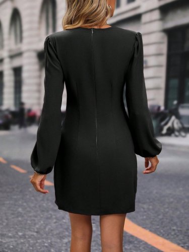 • Kadın uzun kollu kruvaze yakalı yanlardan büzgü detaylı ithal krep kısa elbise