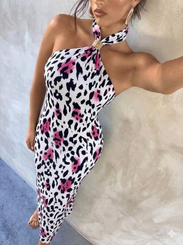 Boyundan bağlamalı toka detaylı dalgıç kumaş elbise